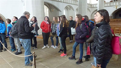 Vielen Dank auch an den Oberbürgermeister der Stadt Oelsnitz, der die Schüler im Ratssaal herzlich willkommen hieß und ihnen nach einem ausführlichen Gespräch einen Blick vom Rathausturm über die Stadt ermöglichte.